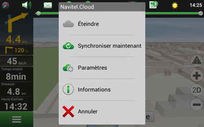 - Revenez à la boîte de dialogue Navitel.Cloud et appuyez sur l'option Synchroniser maintenant.