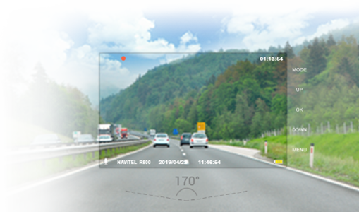 NAVITEL R800 switches on automatically after the engine has started. It features a built-in G-sensor that marks and protects critical footage surrounding an accident in case of sudden acceleration, braking or collision. Night mode and parking mode are supported.