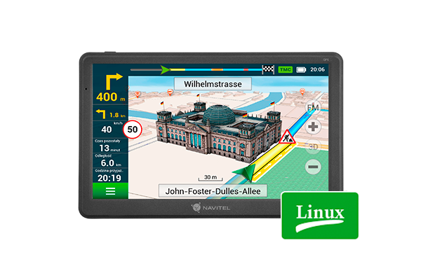 The processor in NAVITEL E700 TMC works at 800 Mhz, and Linux OS ensures fast and stable work of the navitgation program. For additional map storage NAVITEL E700 TMC has a slot for MicroSD cards of up to 32 GB.