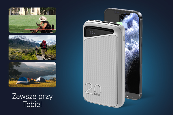 NAVITEL PWR20 MX WHITE to power bank o pojemności 20000 mAh. Dwa porty USB-A oraz dwukierunkowy port USB-C pozwalają na ładowanie kilku urządzeń jednocześnie. Pojemność 20000 mAh wystarcza na kilka cykli ładowania tabletu, smartfona, smartwatcha czy odtwarzacza. Dla pełnej kontroli pozostałego poziomu naładowania power banku, na obudowie umieszczony został cyfrowy wyświetlacz.