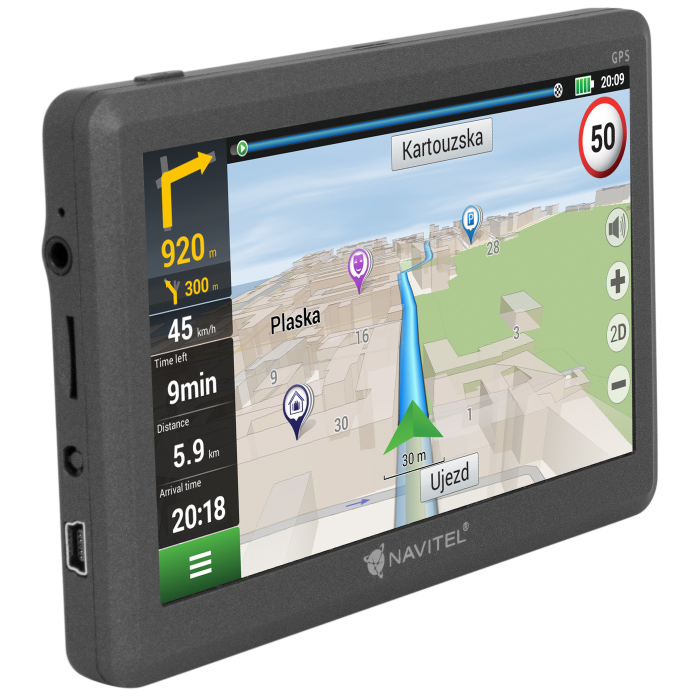 NAVITEL E200 has a 5-inch TFT touch screen display that will be easy to work with both under a bright sunlight and at night. The device can be easily mounted in a car with the help of NAVITEL® windscreen holder. A car charger and stylus are also included in the package.
