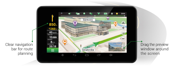NAVITEL RE900 FULL HD is ook een PND perfect voor offline navigatie met voorgeïnstalleerde kaarten van 47 Europese landen. De kaarten bevatten de nieuwste informatie over het wegennetwerk en de actuele SPEEDCAM-database, evenals een groot aantal POI- en 3D-objecten. Real-time verkeer wordt in aanmerking genomen bij het berekenen van de routetijd en kan gemakkelijk in de navigatiemodus op het scherm worden bekeken.