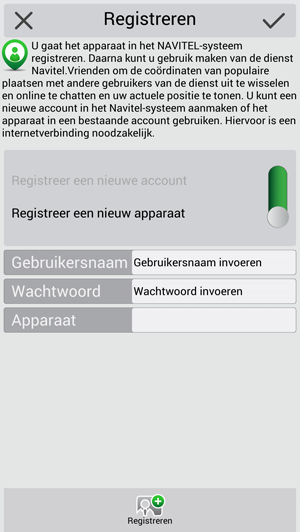Om de "Navitel.Vrienden" -service te gebruiken, moet u zich registreren op https://navitel.cz/nl en ten minste één apparaat met geactiveerde Navitel Navigator-licentie hebben. Dit apparaat moet worden toegevoegd aan de sectie "Mijn apparaten" in uw privégedeelte op de website.